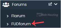 4. On the left side, locate the Forums category. Click on it and then on the FUDforum link that appears.
