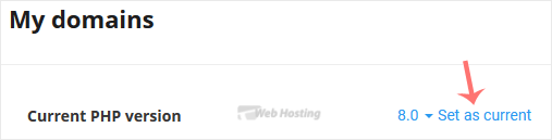 3. To the right side of the Current PHP version, click on the drop-down menu and choose the version you want to use.